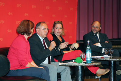 Ein leidenschaftliches Plädoyer für mehr Solidarität in Europa hielt der SPD-Politiker Martin Schulz, Präsident des Europäischen Parlamentes, in Heilbronn. Er sprach auf Einladung des Heilbronner SPD-Bundestagsabgeordneten Josip Juratovic und seiner Hohenloher Kollegin Annette Sawade vor rund 250 Interessierten: "Wir brauchen Europa zum einen zur Friedenssicherung. Da haben wir Deutschen eine historische Verantwortung. Aber was immer noch den wenigsten bewusst ist: Wir brauchen Europa auch, um weltweit wirtschaftlich mithalten zu können."